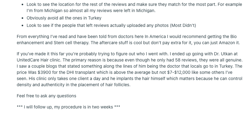 ❝ Perfect experience and results, can only recommend going there. I’d pay much more than they charged for all the quality of life improvement I got from having my hair back. ❞