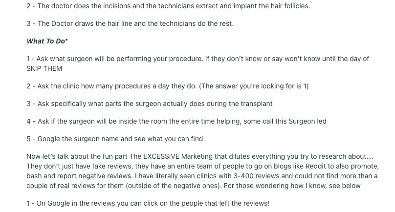 - Not being able to see the so-called famous hair transplant doctor of